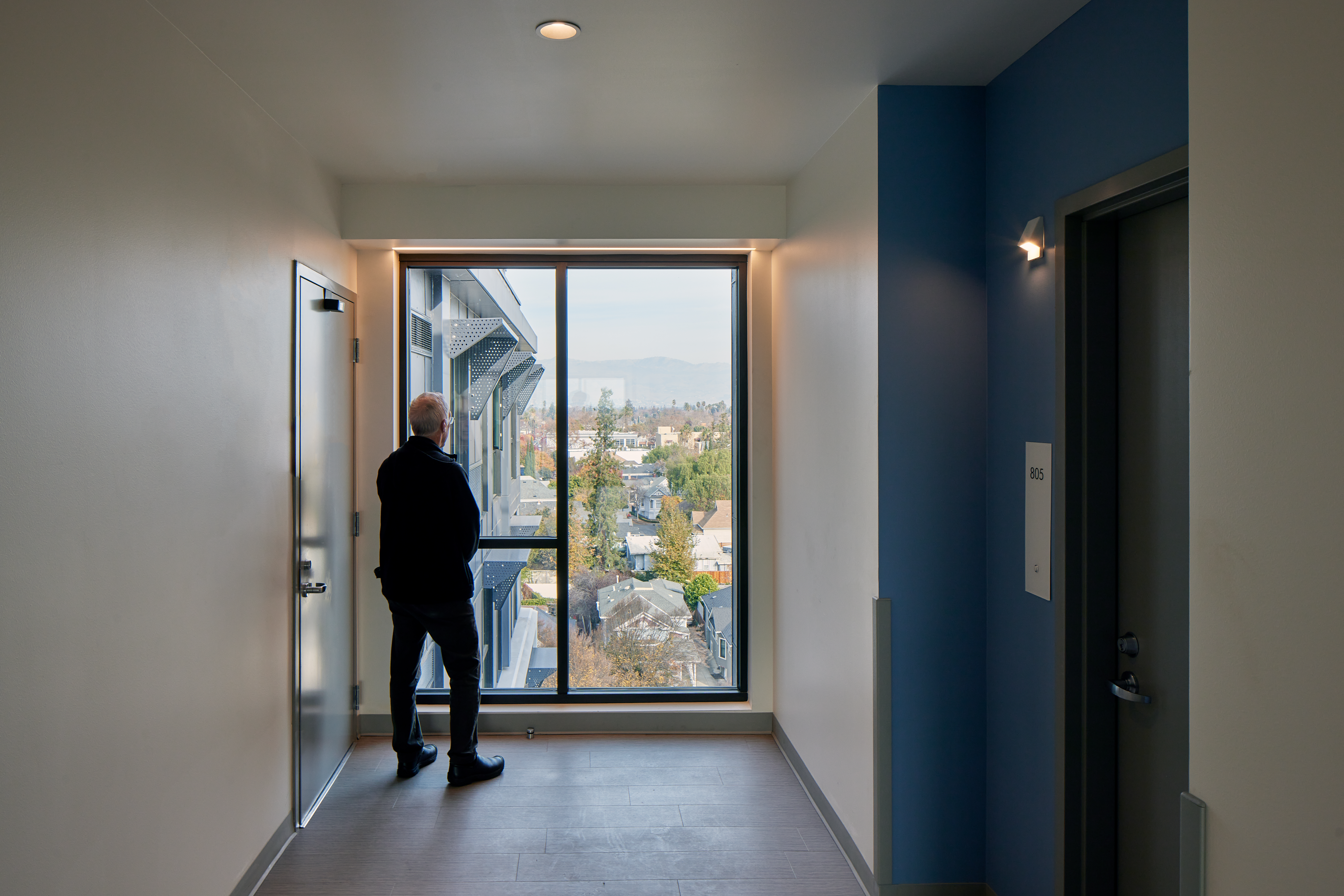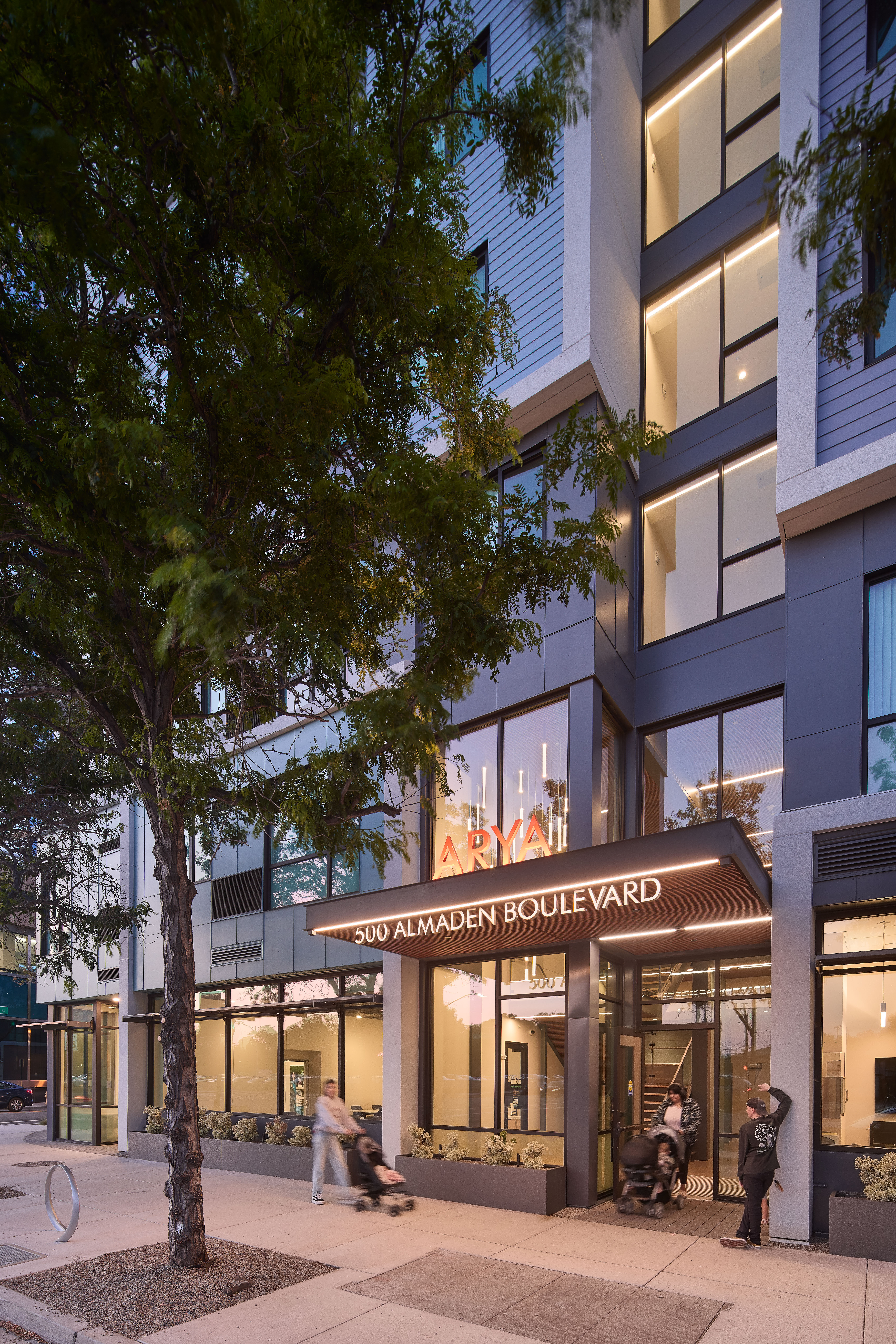 Arya, located at 500 Almaden Boulevard (formerly 226 Balbach Street), consists of 87 units (including one manager’s unit) within a single eight-story building. The unit mix consists of 19 studios, 54 one-bedrooms, and 14 two-bedrooms. Arya is targeted for families and artist households, and is well located with respect to local services, amenities, and public transit in Downtown San Jose.
